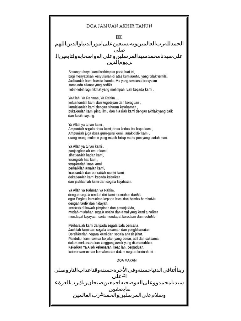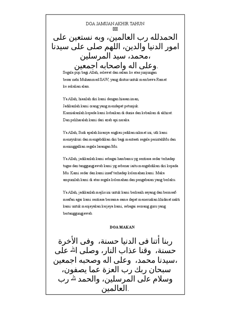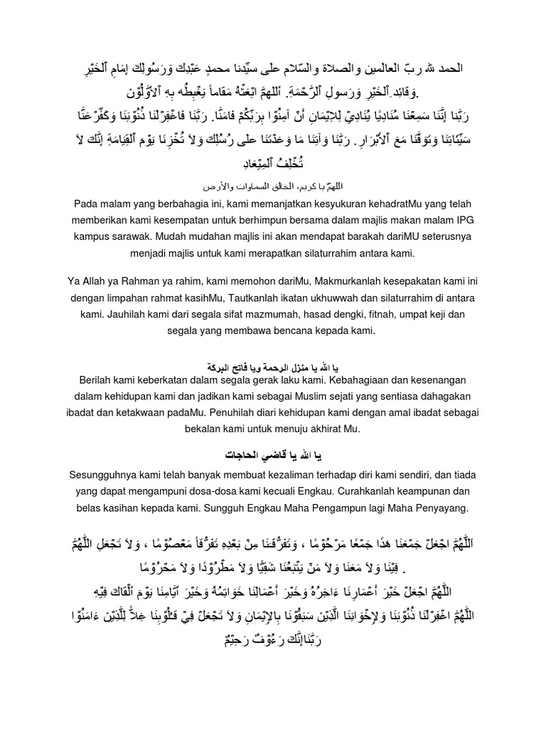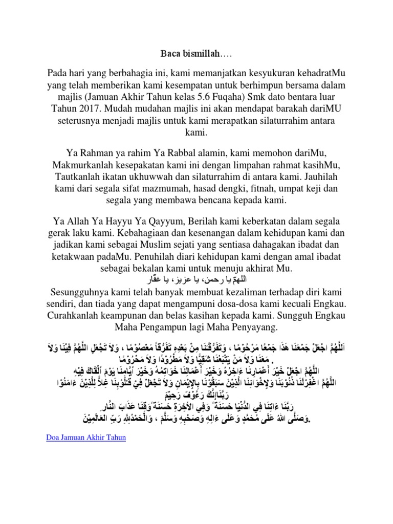 Doa Majlis Jamuan Akhir Tahun Pdf