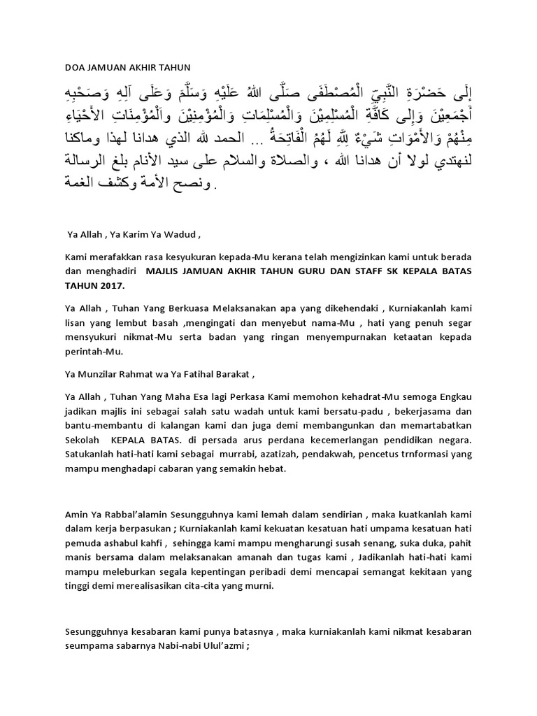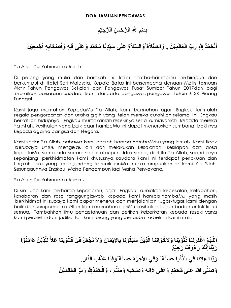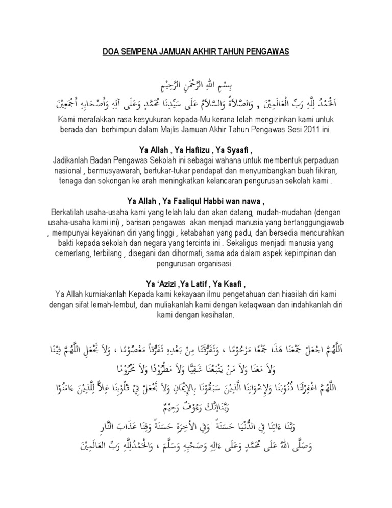Doa Sempena Jamuan Akhir Tahun Pengawas Pdf