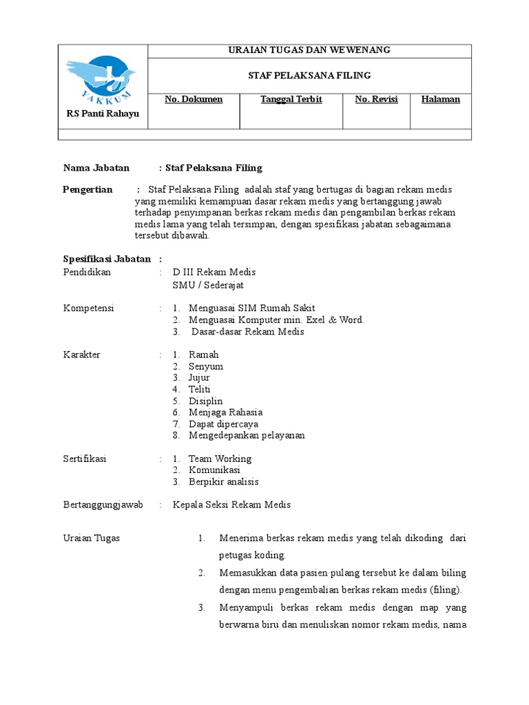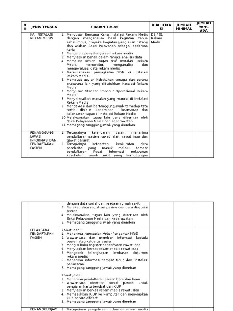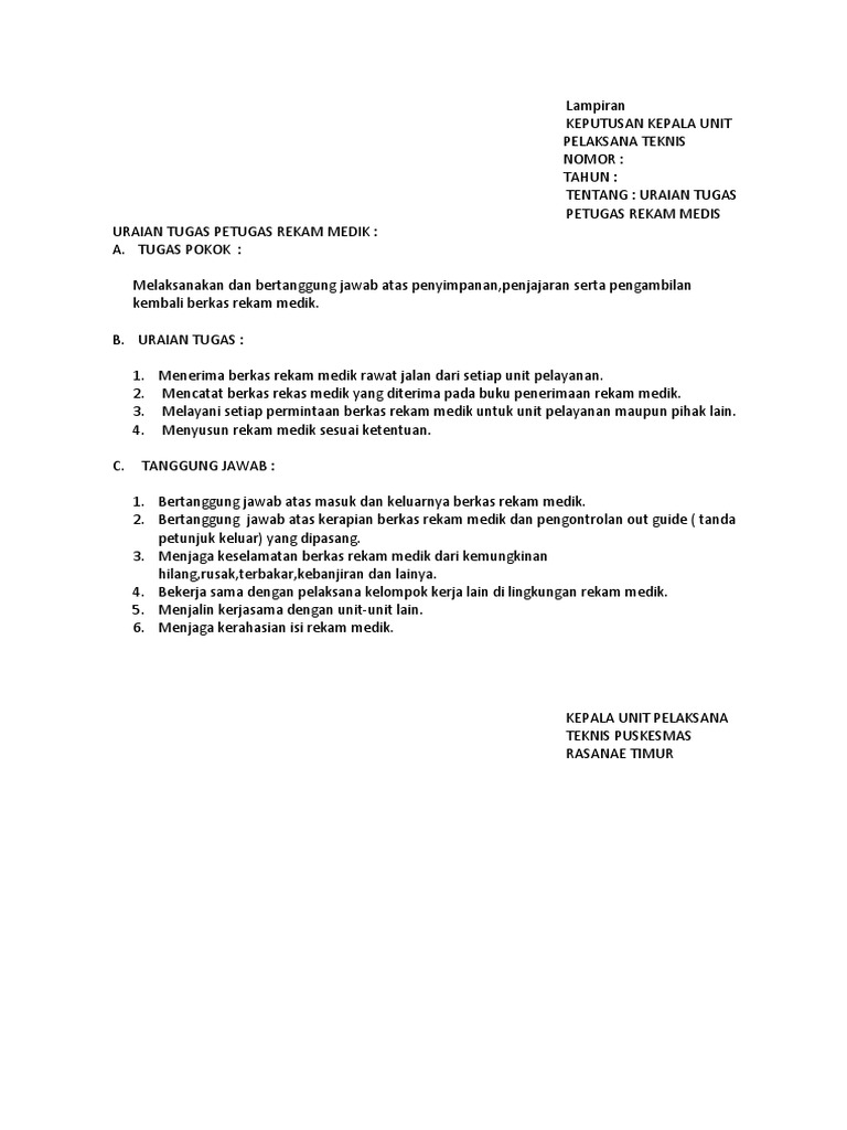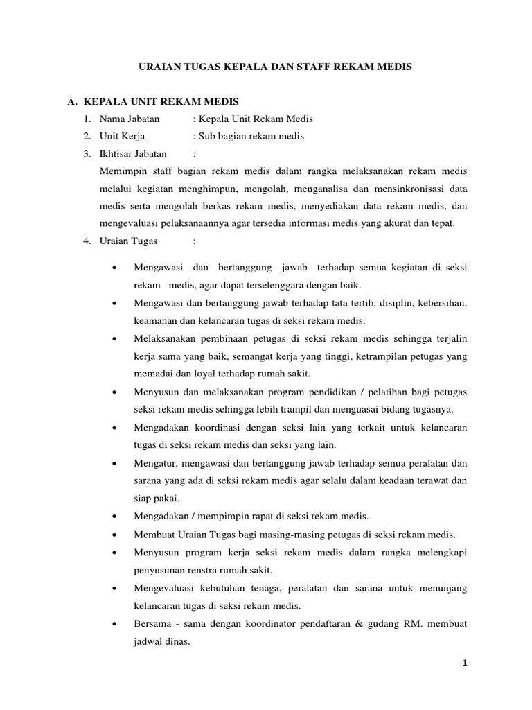 Uraian Tugas Kepala Dan Staff Rekam Medis Pdf