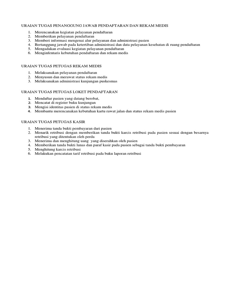 Uraian Tugas Penanggung Jawab Pendaftaran Dan Rekam Medis Pdf