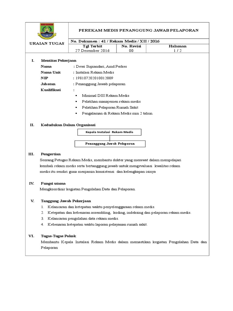 Doc Uraian Pekerjaan Kepala Instalasi Rekam Medik Salamander Orion Academia Edu